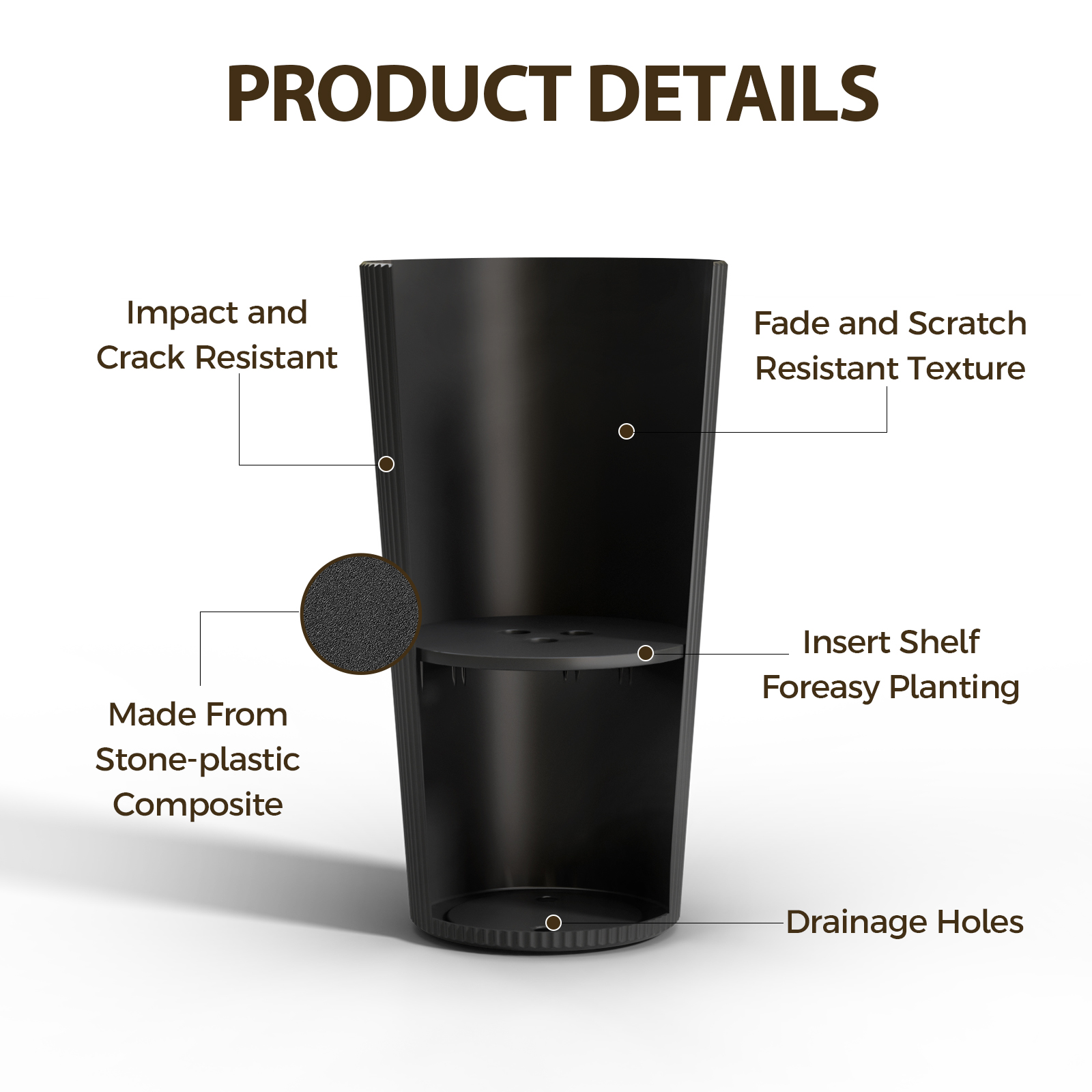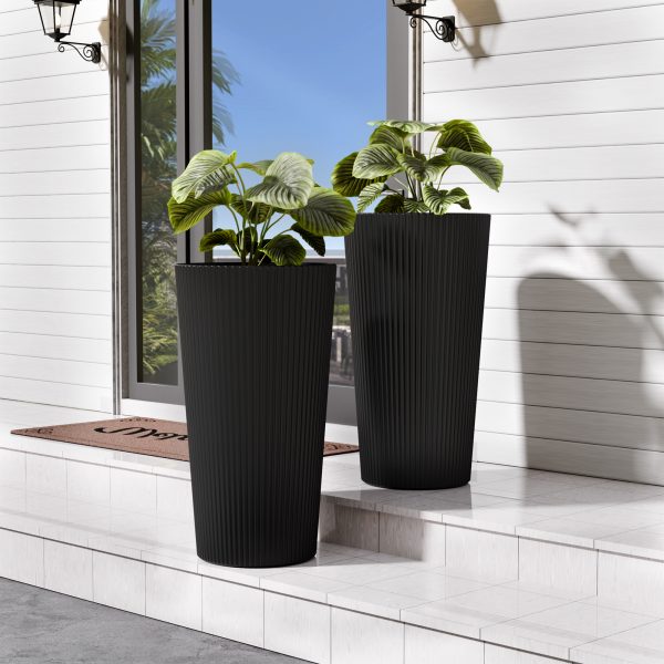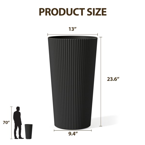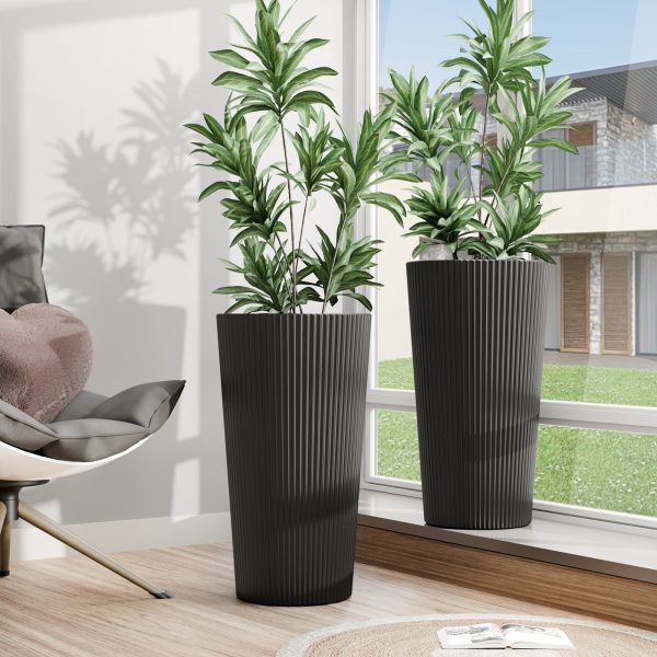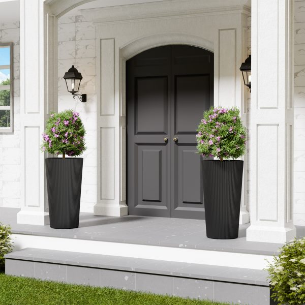 Chiccushion 23.6 inch Tall Planter Set of 2, Large Plastic Round Planter for Outdoor Indoor Garden Patio Front Door, Black