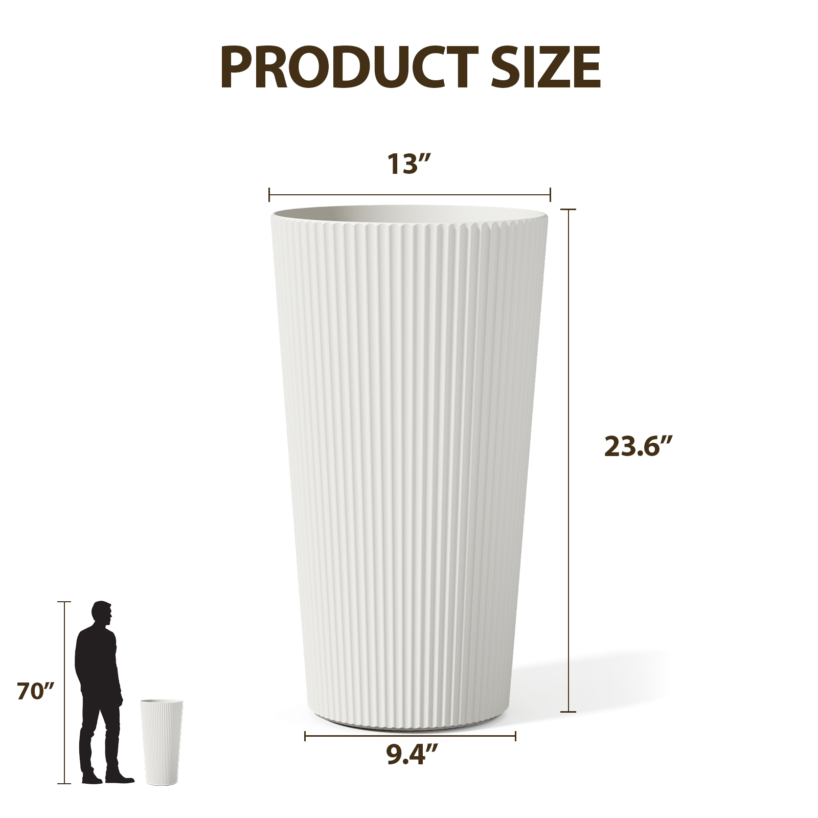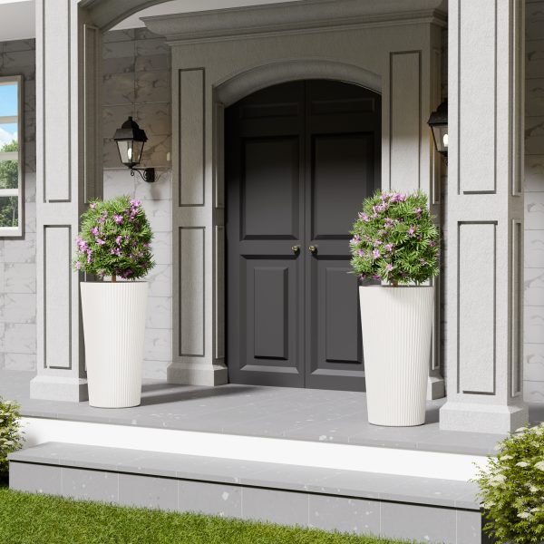 - SET OF 2 STYLISH TALL PLANTERS: These large, 23.6-inch tall planters are perfect for both indoor and outdoor use. Use it to decorate your living room, or place it on an outdoor area like a balcony, patio, or porch.Overall Dimensions: 23.6″H x 13″L x 13″W.