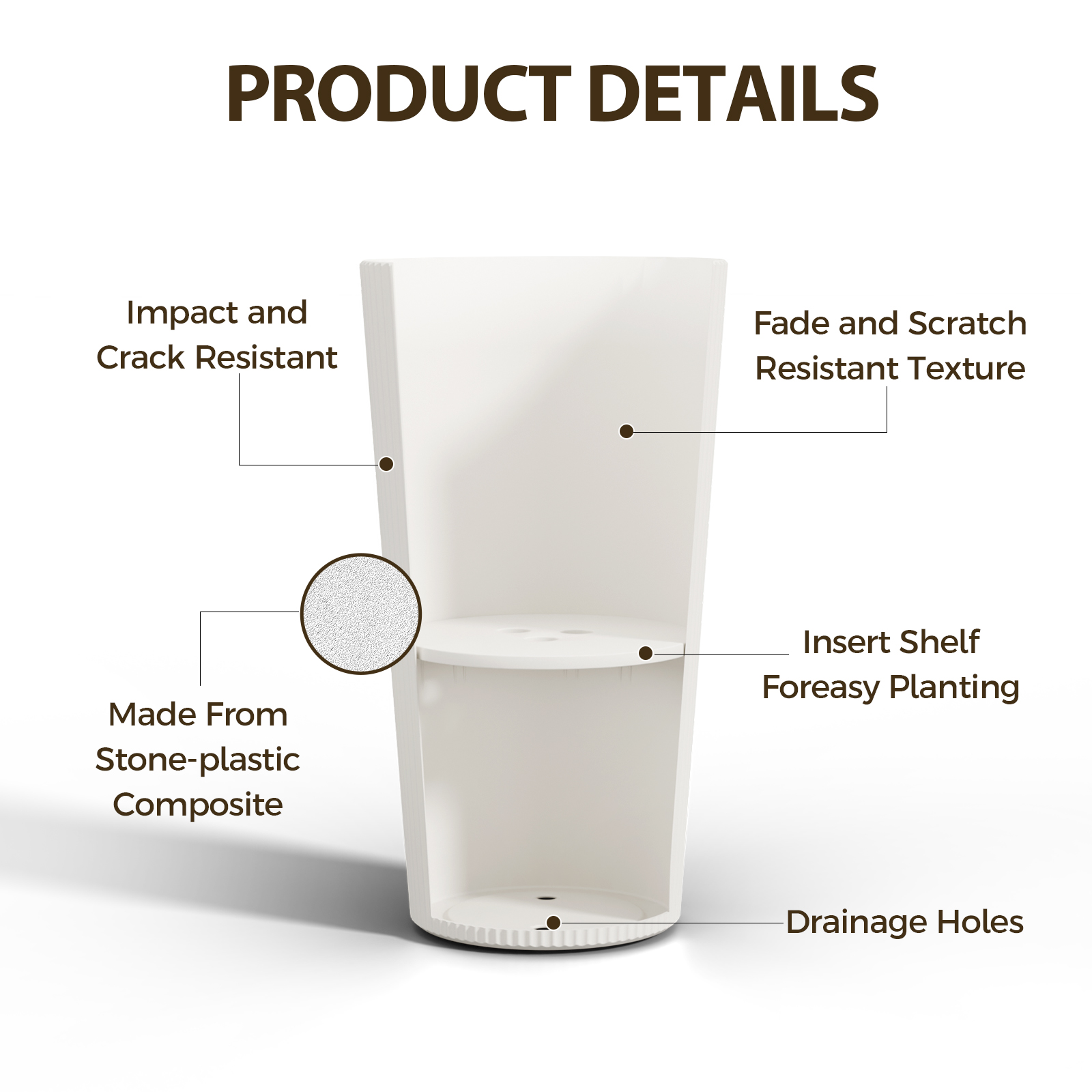 - WEATHER & UV RESISTANT – Allow you to enjoy these durable tall planters for outdoor plants in all types of weather. Built to withstand intense sun and harsh winter temperatures, free from fade, frost, crack and peel damage so you can use it indoors and outdoors freely.