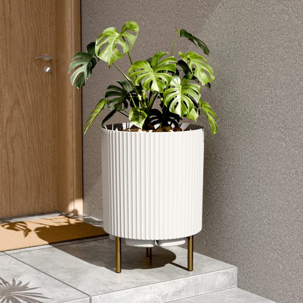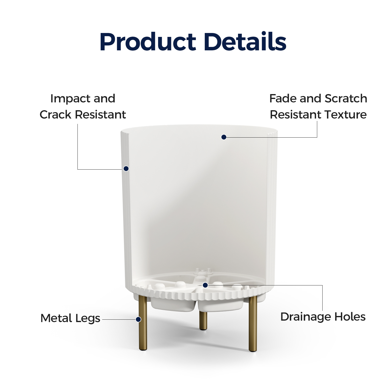 - A Complete Set: Minimalist plastic planter, combined with a sculptural, metal stand that match perfectly together and looks great in any home.