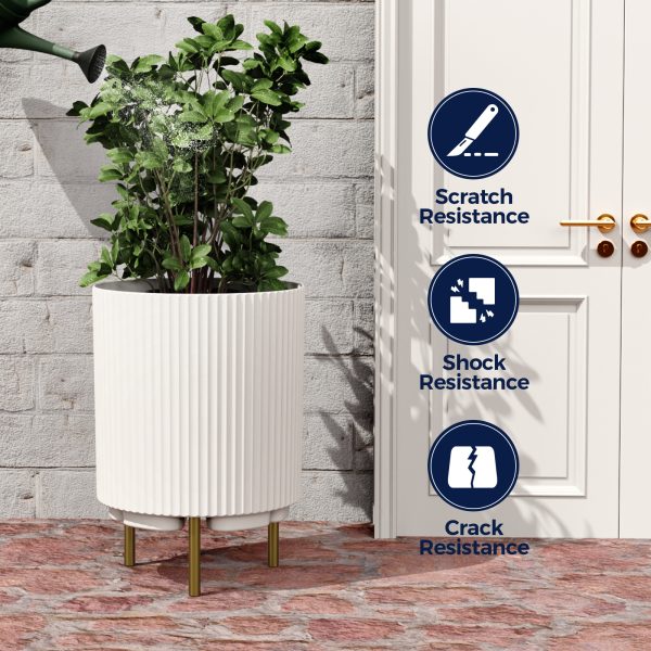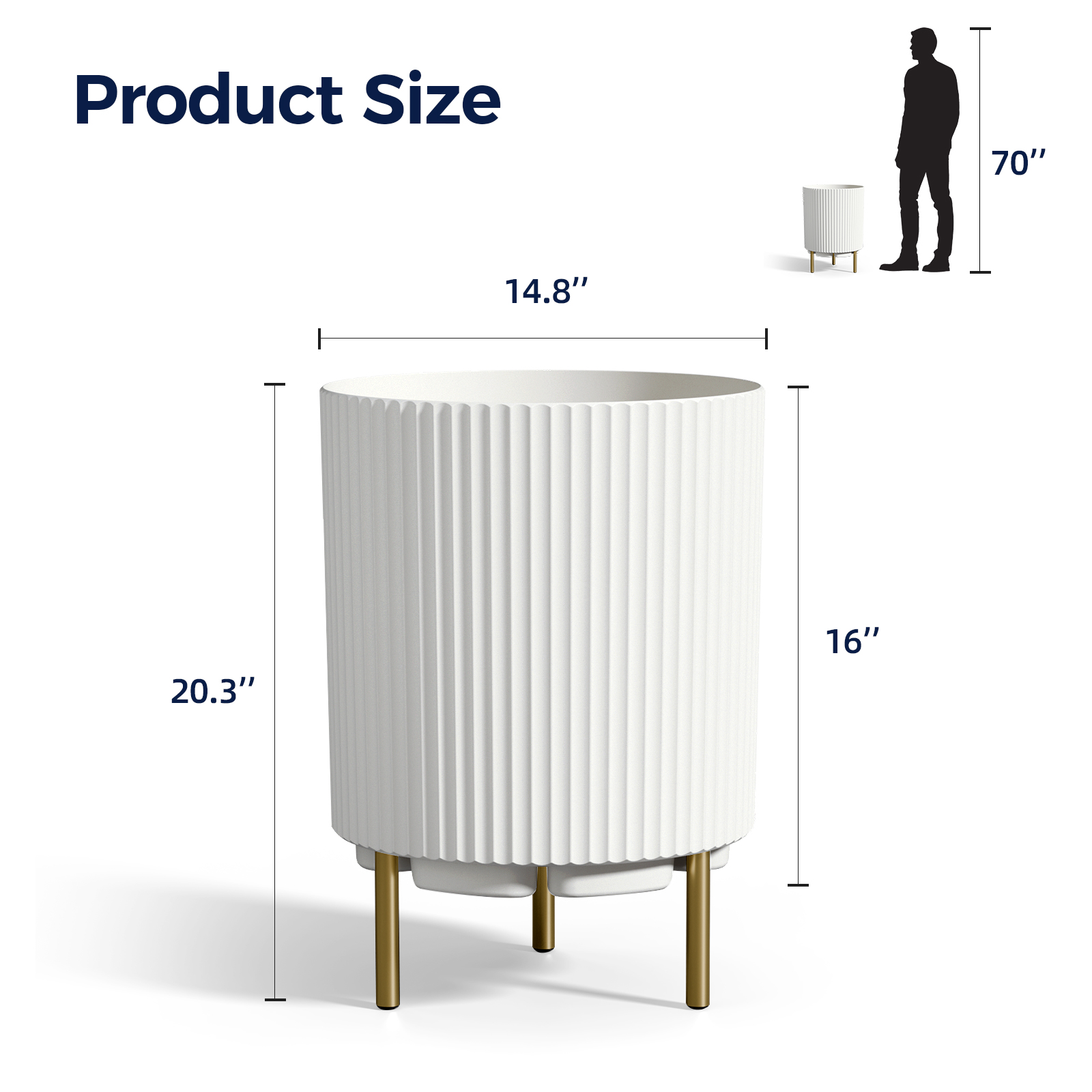 - 14.8 Inch Pot with Stand Set: Planter size: 14.8″Diameter x 16″H; pot with stand total height: 20.3 inch.
